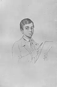 Pedro Américo desenhava muito bem e logo a fama do pequeno prodígio se espalhou pela cidade. Quando uma expedição científica ali chegou em 1852, seu organizador, o naturalista Louis Jacques Brunet, foi visitá-lo e pôde apreciar uma série de cópias de obras clássicas realizadas pelo menino, que não havia completado ainda dez anos de idade. Querendo testá-lo para comprovar a habilidade que se apregoava, arranjou uns objetos e fez Pedro Américo desenhá-los em sua presença, e ele os reproduziu com grande semelhança. Impressionado, Brunet decidiu contratá-lo como desenhista da expedição, de maneira que o pequeno artista acompanhou o francês por uma viagem de vinte meses cruzando boa parte do nordeste brasileiro.[1] Em 1854, com apenas onze anos, provido de várias cartas de recomendação, foi admitido na Academia Imperial de Belas Artes (AIBA), no Rio de Janeiro, mas não pôde começar de imediato. Passou antes uma temporada no Colégio Pedro II, estudando latim, francês, português, aritmética, desenho e música, destacando-se entre os colegas por sua aplicação e inteligência. Suas cartas para a família revelam um estudante ciente de suas responsabilidades, e já lhe nascia um desejo, ainda incerto, de se dedicar à pintura histórica.[3][4]