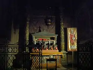 | Atribuições | Cardeal segurando um chicote com nós (a disciplina); peregrino segurando uma bula papal; Chapéu cardinalício e hábito beneditino |
