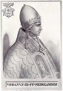 Em 3 de outubro, recém-chegado em Ferrara, o papa elevou o tom ordenando que Balduíno demolisse sua nova sede, profanasse o local e suspendesse seus clérigos, que restaurasse todos os membros do capítulo anterior e que não tomasse mais nenhuma ação contra eles enquanto o caso ainda estivesse em aberto. Balduíno tinha 30 dias para cumprir as ordens.[21] Southern alega que Pedro fez um apelo final, de tom pessoal, ao seu antigo professor enquanto cavalgavam de Verona para Ferrara e que o papa teria ficado tão nervoso com esta tentativa de driblar os procedimentos legais que teria morrido no dia seguinte de ataque cardíaco.[4] O relato de Kingsford é menos dramático, sem a cronologia encurtada. A carta do papa enviada de Ferrara parece ter sido enviada algumas semanas antes de sua morte: Urbano morreu em 19 de outubro e foi enterrado no dia seguinte; papa Gregório VIII foi eleito em 21 de outubro, como relatou Honório aos seus monges.[22] O próprio relato de posterior de Pedro sobre a morte do papa afirma que ele adoeceu ao trocar de cavalos, logo depois de sua tentativa de convencê-lo, mas ele também menciona que o papa teria contraído disenteria na viagem[23] — uma causa de morte bastante provável. O novo papa foi com a corte para Pisa no caminho de Roma e parece ter sido bem menos simpático à causa dos monges,[14] mas não tomou nenhuma outra decisão sobre o caso antes de morrer em Pisa em dezembro. O papa seguinte foi Clemente III.[4]