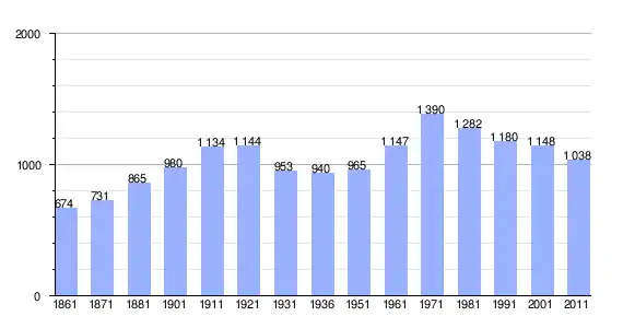 | Variação demográfica do município entre 1861 e 2011[2] |