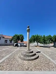 O actual marco jurisdicional resulta predominantemente de uma reedificação efectuada em 1959 a partir de alguns fragmentos de pelourinho original. Assente num soco circular de três degraus, é constituído por uma coluna lisa, gravada com o cronograma referente à reedificação, remata por um capitel anelado. Sobre o capitel, dispõe-se uma esfera gomada, decorada com elementos fitomórficos e sobrepujada por uma esfera armilar.[2]