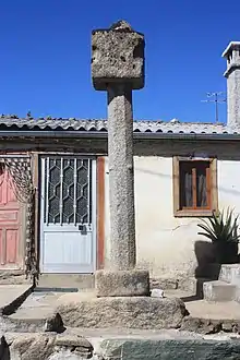 Os degraus, primitivamente em xisto, foram refeitos em granito. O fuste, decorado com semiesferas, é oitavado e apoia um capitel de forma cúbica com arestas ligeiramente côncavas. Por cima do capitel pode-se observar uma pequena pirâmide.[2]