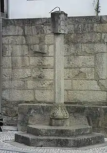 Colocado próximo do edifício da antiga câmara e cadeia, este pelourinho é um monumento quinhentista de granito, reconstruído em 1965 com o aproveitamento da base e do remate. A estrutura do símbolo municipal assenta num pódio hexagonal de três degraus, seguido de um plinto também hexagonal. Por sua vez, segue-se uma base cilíndrica em forma de bolbo, com elementos decorativos, que se prolonga num fuste prismático liso. Numa das faces do corpo paralelepipédico do remate figura o escudo nacional.[2]