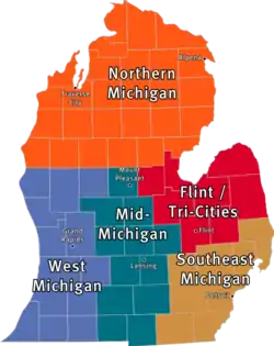 A grande maioria dos habitantes do Michigan (97%, cerca de 9 500 000 pessoas) reside nesta península, onde ficam as maiores cidades do Estado, como Detroit, Grand Rapids, Flint, Lansing, Battle Creek e Ann Arbor. A maior parte da população concentra-se na metade meridional. Há densas florestas na menos povoada metade norte.