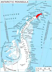Há mais de um século, os cartógrafos usaram vários nomes (Terra de Trinity, Terra de Palmer, Terra de Luís Felipe) para esta porção da Península Antártica, cada nome tendo algum mérito histórico. O nome recomendado deriva de "Terra de Trinity" dado por Edward Bransfield durante janeiro de 1820 (para a Costa Trinity), embora a aplicação precisa dele não tenha sido identificada com certeza e é uma questão de interpretação diferente por historiadores antárticos.
