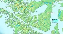 A península de Brunswick tem o número 4 neste mapa do sul do Chile