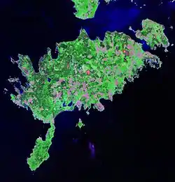 Imagem de satélite de Saaremaa, com a península de Sõrve em baixo.