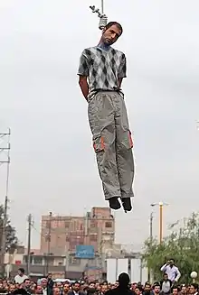 A forca é o único método comum de execução no Irã do século XXI, geralmente realizado na prisão.