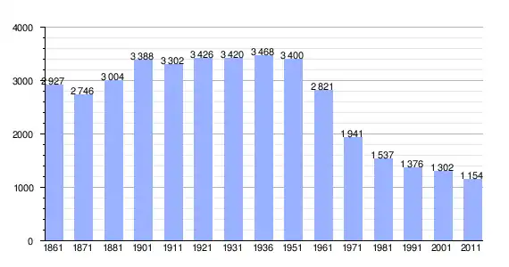 | Variação demográfica do município entre 1861 e 2011[3] |