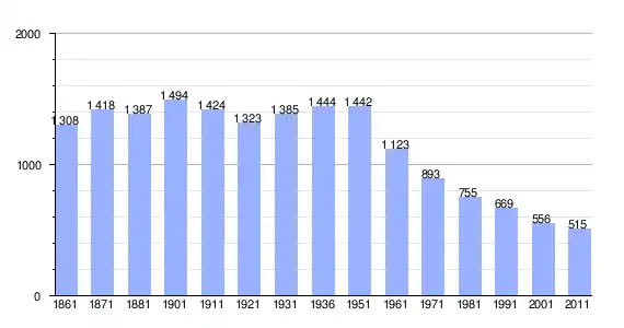 | Variação demográfica do município entre 1861 e 2011[3] |