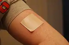 Penso transdérmico é um adesivo impregnado com um fármaco ou contracetivo que é aplicado e absorvido lentamente através da pele.[1]