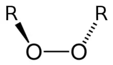 Os peróxidos são compostos que apresentam a fórmula geral R-O-O-R' , em que R e R' são radicais orgânicos.[1] O termo também é usado para sais do ânion O22-.[1]
