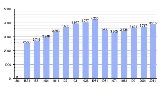 | Variação demográfica do município entre 1861 e 2011[3] |