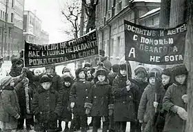 Em Novembro de 1917, poucas semanas após da revolução, foi criado o Comissariado do Povo para o Esclarecimento, que um mês mais tarde criou a União de professores internacionalistas de toda a Rússia, com a finalidade de banir a instrução religiosa dos currículos escolares. A fim de intensificar a propaganda antirreligiosa no sistema escolar, a Glavpolitprosvet (Administração Central de Eclarecimento Político) foi criada em Novembro de 1920.[32]
