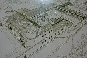 Reconstrução do palácio do governador romano em Aquinco, Hungria