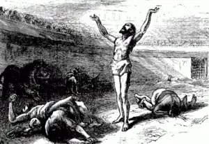 ...   ele emitiu uma promulgação destinada a assustá-los, dizendo que o Ponto estava cheio de ateus e cristãos que tinham a dificuldade de proferir o mais vil abuso dele; estes ele ordenou que fossem embora com pedras se quisessem ter o deus gracioso.