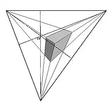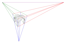 Assim como no processo com dois pontos de fuga, quanto mais próximos os pontos de fuga estiverem posicionados, mais distorcido será o resultado da representação. O terceiro ponto de fuga é chamado de ponto de fuga vertical (PFV).[1]