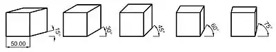 Dependendo do ângulo de inclinação das fugantes, o desenho parecerá deformado, necessitando de uma tabela de reduções. Quanto maior for o grau de inclinação, maior deverá ser o coeficiente de redução.[4]
