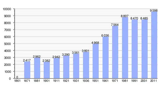 | Variação demográfica do município entre 1861 e 2011[3] |