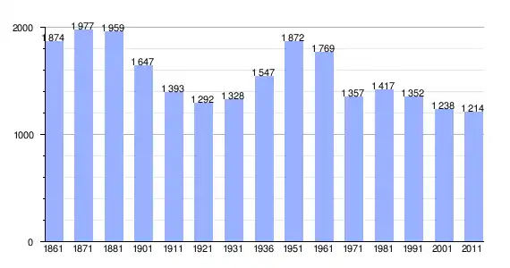 | Variação demográfica do município entre 1861 e 2011[3] |