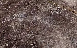 Petróglifo dos Carballos, em Campo Lameiro, Galiza.