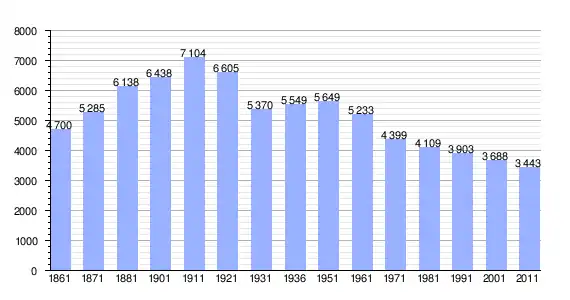 | Variação demográfica do município entre 1861 e 2011[3] |