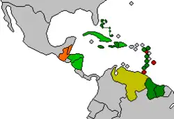 ![]() Venezuela (em amarelo) e os demais membros da Petrocaribe (em verde). | |