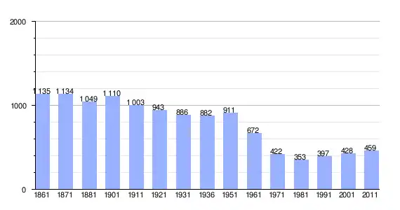 | Variação demográfica do município entre 1861 e 2011[3] |