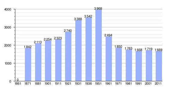 | Variação demográfica do município entre 1861 e 2011[3] |