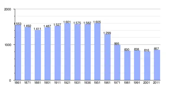 | Variação demográfica do município entre 1861 e 2011[3] |