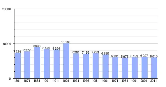| Variação demográfica do município entre 1861 e 2011[3] |