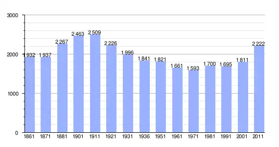 | Variação demográfica do município entre 1861 e 2011[3] |