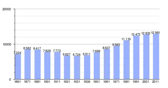 | Variação demográfica do município entre 1861 e 2011[3] |