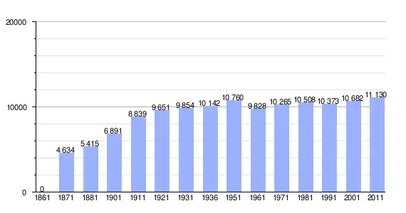 | Variação demográfica do município entre 1861 e 2011[3] |