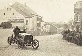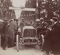 ![]() Pierre de Crawhez vencedor no Circuito das Ardenas em 1903 com um Panhard |