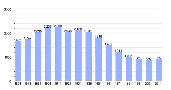 | Variação demográfica do município entre 1861 e 2011[3] |
