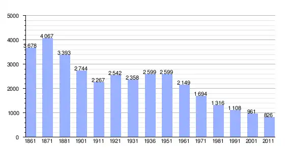 | Variação demográfica do município entre 1861 e 2011[3] |