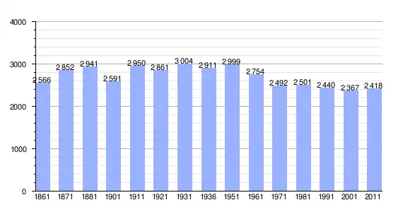 | Variação demográfica do município entre 1861 e 2011[3] |