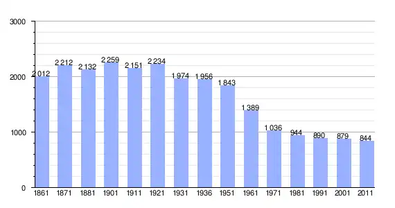 | Variação demográfica do município entre 1861 e 2011[3] |