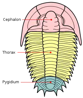 Nos trilobitas, o pigídio pode variar de tamanho, desde extremamente reduzido (muito menor que a cabeça) até muito maior que a cabeça (cefalon). Pode ser liso como na ordem Asaphida ou espinhoso como na Lichida.