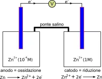 Pilha de concentração é uma pilha com duas células de volume equivalente do mesmo material diferindo apenas na concentração. Pode-se calcular o potencial desenvolvido por uma tal célula usando a equação de Nernst. Uma célula de concentração produz uma pequena tensão enquanto tenta alcançar o equilíbrio.[1] Este equilíbrio ocorre quando a concentração do reagente em ambas as células são iguais.