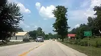 O diagrama seguinte representa as localidades num raio de 24 km ao redor de Pindall.