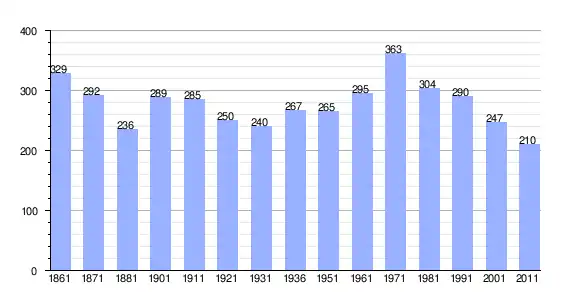 | Variação demográfica do município entre 1861 e 2011[3] |