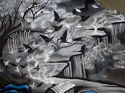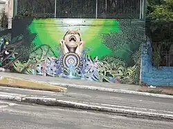 Esta sucinta descrição dos caminhos da pintura no Rio Grande do Sul não poderia encerrar sem se fazer uma menção a uma manifestação pictórica característica dos grandes centros urbanos, o graffiti, que, em especial em Porto Alegre, nos últimos anos já vem mostrando exemplares de grande interesse plástico. Ainda é uma prática clandestina confundida com a pichação e o vandalismo,[52] sendo realizada em sua grande maioria por autores anônimos, mas sua presença já é massiva nos bairros mais centrais da capital, se espalha para outras cidades e tem influenciado a produção "culta" de vários artistas da geração mais jovem. No centro do país esta forma de arte já desenvolveu uma qualidade artística reconhecida por vários críticos e até mesmo mereceu atenção dos curadores da Bienal Internacional de Arte de São Paulo nos anos 1980,[53] mas o graffiti gaúcho ainda está à espera de estudos qualificados.