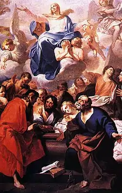 A preocupação das elites ilustradas mas desocupadas com a felicidade e o prazer, que desenham a atmosfera rococó, gerou problemas no transporte destes princípios para a arte religiosa, que atendia antes às necessidades das classes mais baixas, cuja devoção não foi em nada afetada pelos costumes desarraigados das elites. Mas as contradições aparentes foram solucionadas pelos moralistas cristãos do período, que associaram desde logo a desejada felicidade dos sentidos com a felicidade proporcionada por uma vida virtuosa, afirmando que o prazer humano seria uma das dádivas de Deus e sugerindo que o amor divino também seria fonte de uma espécie de volúpia sensorial. Com essa acomodação, a religião, anteriormente sobrecarregada pela noção de culpa e pelas ameaças da fogueira e da condenação eterna, assume um tom otimista e positivo, e gera uma pintura diante da qual os fiéis podiam rezar "na esperança e na alegria" e que serve de ponte entre a felicidade terrena e a celeste.[44]