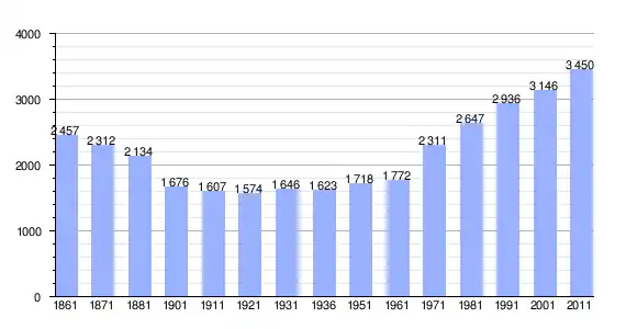| Variação demográfica do município entre 1861 e 2011[3] |