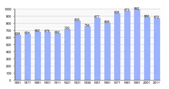 | Variação demográfica do município entre 1861 e 2011[3] |