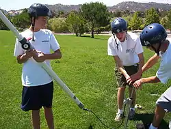 O combustível então se inflama, criando gases quentes em expansão, e forçando a saída do projétil no tambor. As distâncias variam muito, dependendo de vários fatores, incluindo o tipo de combustível utilizado, a eficiência do combustível relação ar / câmara de combustão razão / barril, e as características de vôo do projétil. Distâncias comuns são lançamentos de 10 metros a 100 metros.