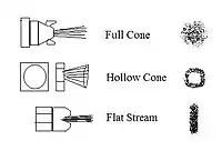 Devido a uma ampla variedade de formas e tamanhos de bicos, a consistência da tinta pode ser variada. A forma da peça de trabalho e da consistência desejada e tinta padrão são fatores importantes na escolha de um bocal. Os três bicos mais comuns são o cone completo, cone oco, e fluxo plano. Existem dois tipos de processos de pulverização. Em um método de operação manual, o equipamento é operado por um operador qualificado, e aplicado a uma distancia de cerca de 6 a 10 polegadas (15-25 cm) do objeto. Em um processo automático, a cabeça da pistola está ligada a um robô automatizado através do bloco de montagem e proporciona o fluxo de tinta a partir das operações pré-programada. O objeto a ser pintado é geralmente colocado sobre rolos ou uma plataforma giratória para assegurar uma cobertura igual de todos os lados.