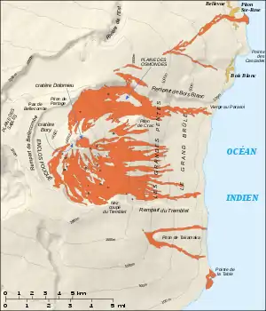Piton de la Fournaise (tradução do francês significaria Pico da Fornalha) é um vulcão em escudo na parte oriental da ilha de Reunião, departamento ultramarino da França.